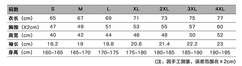 本产品共8个尺码:XS、S、M、L、XL、2XL、3XL、4XL 覆盖99.5%的人群。查看尺码表>