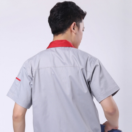 深蓝配桔红短袖工作服AD069