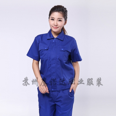 苏州鹰诺服装:艳蓝色夏季工衣套装AD082