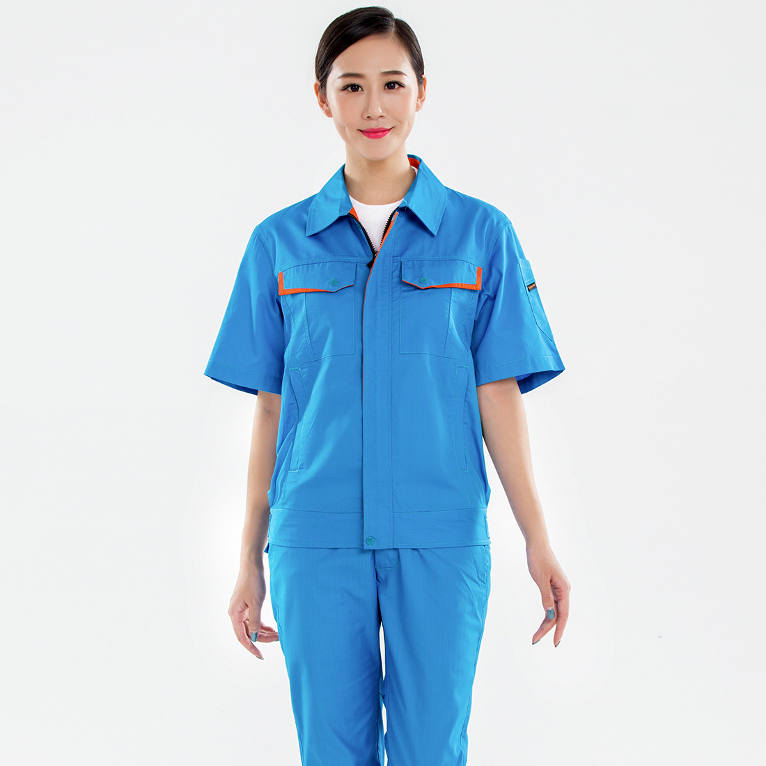 蓝色拼橙色夏季工作服AD13-4
