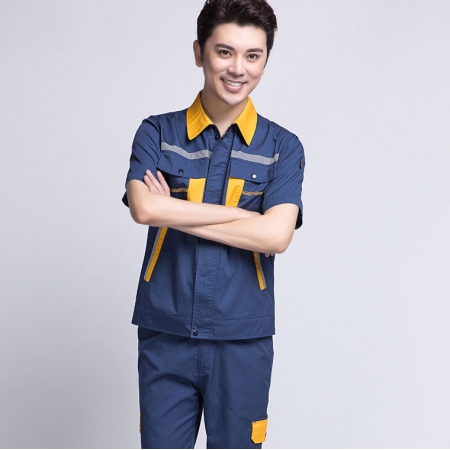 深蓝配桔红工作服AC069